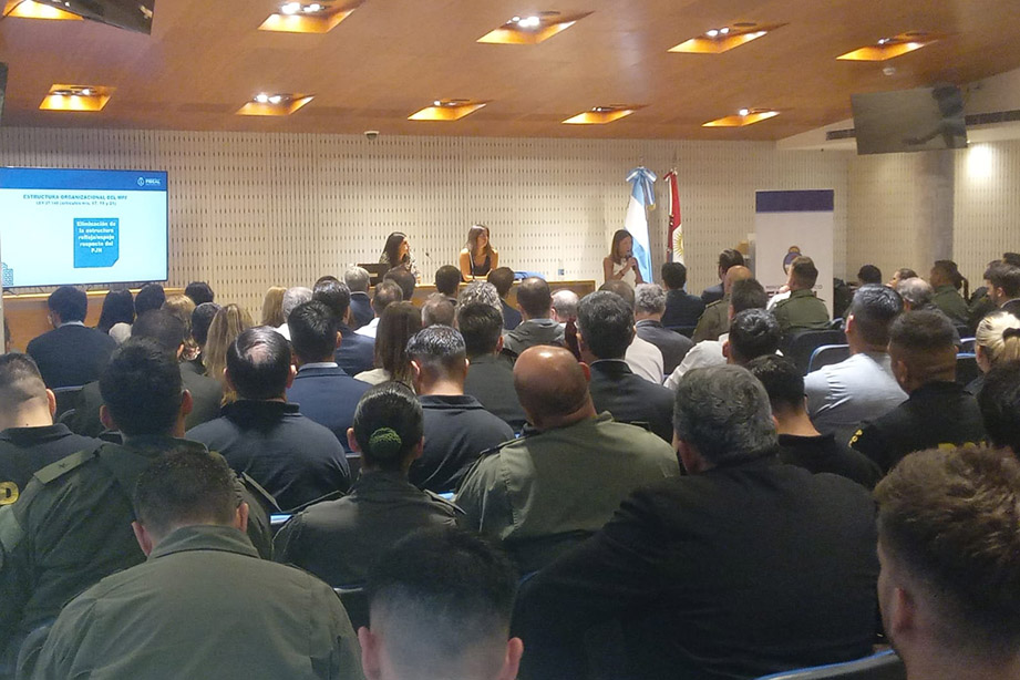 Una de las actividades se desarrolló en el Auditorio del Centro de Perfeccionamiento Ricardo Núñez, de la ciudad de Córdoba, y asistieron 200 participantes pertenecientes a la Policía Federal Argentina (PFA), la Gendarmería Nacional (GNA), la Policía de Seguridad Aeroportuaria (PSA), fuerzas de seguridad de la provincia y de la Agencia de Recaudación y Control Aduanero (ARCA).
