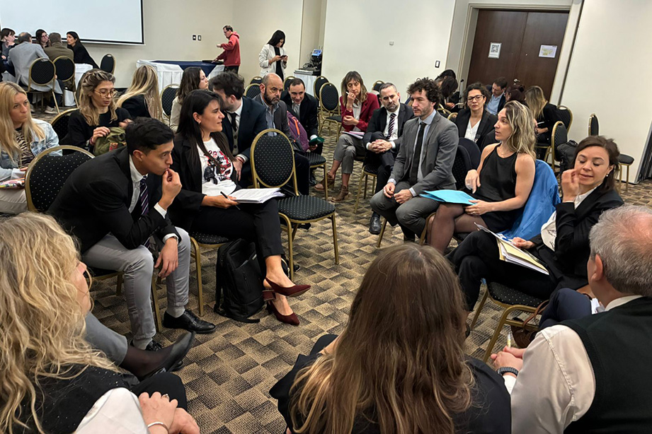 Durante el desarrollo de la jornada, las y los participantes fueron divididas/os en grupos de fiscales y defensores para que, cada uno en su rol, trabajara sobre un caso práctico hipotético elaborado por la UNISA.