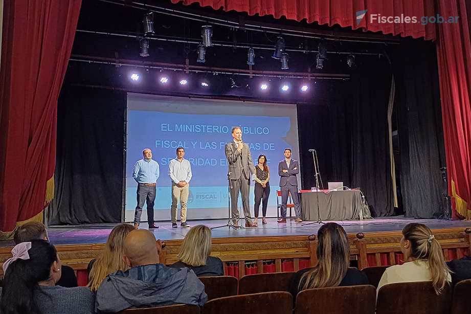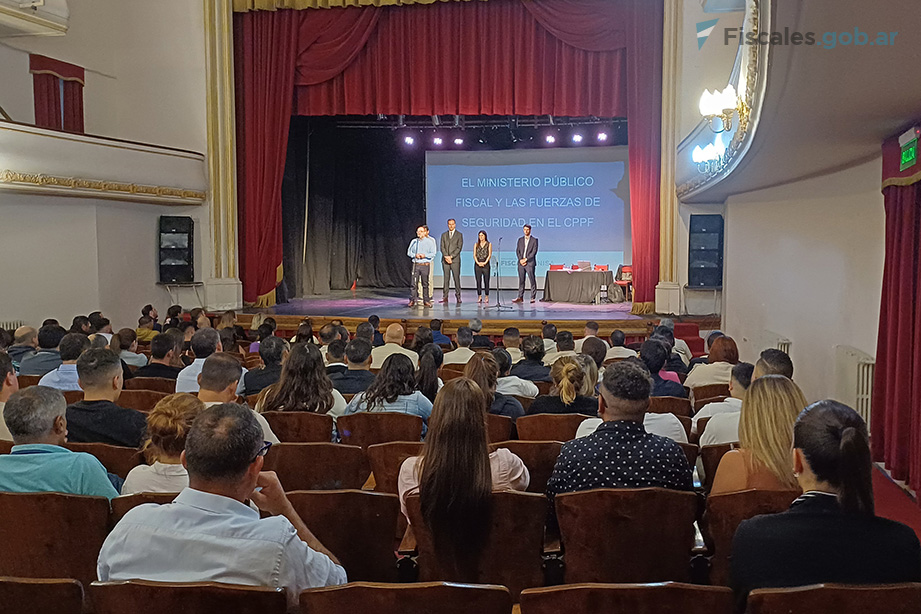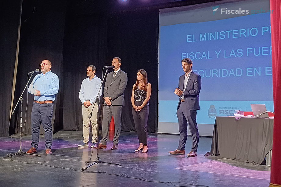 La exposición fue dirigida por Citate, Rogiano y Radiminski, quienes se refirieron a la relación y a los desafíos que presentará el vínculo entre las fuerzas de seguridad y el Ministerio Público Fiscal en el nuevo esquema procesal. La capacitación, también contó con la participación de Curi, la auxiliar fiscal Laura Ahumada y el director de formación del Ministerio de Seguridad de la provincia de Buenos Aires, Martín Meza.
