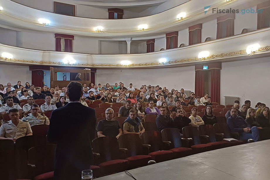 Capacitación a más de 150 integrantes de Prefectura Naval Argentina, Policía Federal Argentina y efectivos de la policía de la provincia de Buenos Aires en el Teatro Municipal Unione de la ciudad de Dolores. Foto: UNISA