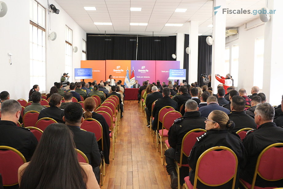 Durante la jornada, Di Gangi y Rogiano; el fiscal general del Distrito Rosario, Oscar Fernando Arrigo; el titular de la Unidad Fiscal Rosario, Javier Arzubi Calvo; la fiscal federal Adriana Saccone; la y el fiscal penal coadyuvante Federica Tiscornia y Andrés Montefeltro; y la subsecretaria de Relaciones con el Poder Judicial del Ministerio de Justicia y Seguridad de Santa Fe, Florencia Blotta, expusieron ante más de 200 preventores e investigadores de las fuerzas de seguridad federales en la sede de Gobierno de la provincia de Santa Fe en la ciudad de Rosario.