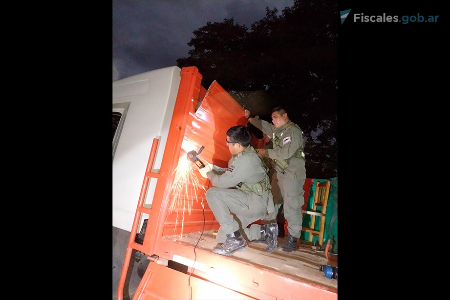 Ante esta situación, los agentes se comunicaron con la fiscalía, que a través del auxiliar fiscal José Rafael Lamas dispuso las diligencias de rigor, entre ellas la inspección del chasis y el acoplado. Al hacerlo, los gendarmes percibieron un fuerte olor a pintura procedente del sector de la baranda del chasis, que da con la cabina del camión, donde también se advirtieron tres tornillos y un chapón que no se correspondían con la fabricación original del chasis.