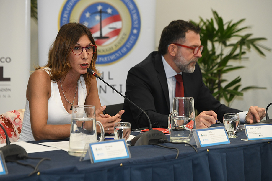 A su turno, la experta penal del Programa de Reforma de Justicia de la UNODC, Leticia Risco, explicó que estos encuentros se encuentran enmarcados en el “Proyecto para fortalecer la transición al sistema penal acusatorio” que lleva seis años en la Argentina, y que su objetivo es mejorar las capacidades técnicas de respuesta institucional para perseguir el tráfico ilícito de drogas, los delitos económicos, el crimen organizado y la corrupción, entre otros, a través de un sistema acusatorio.