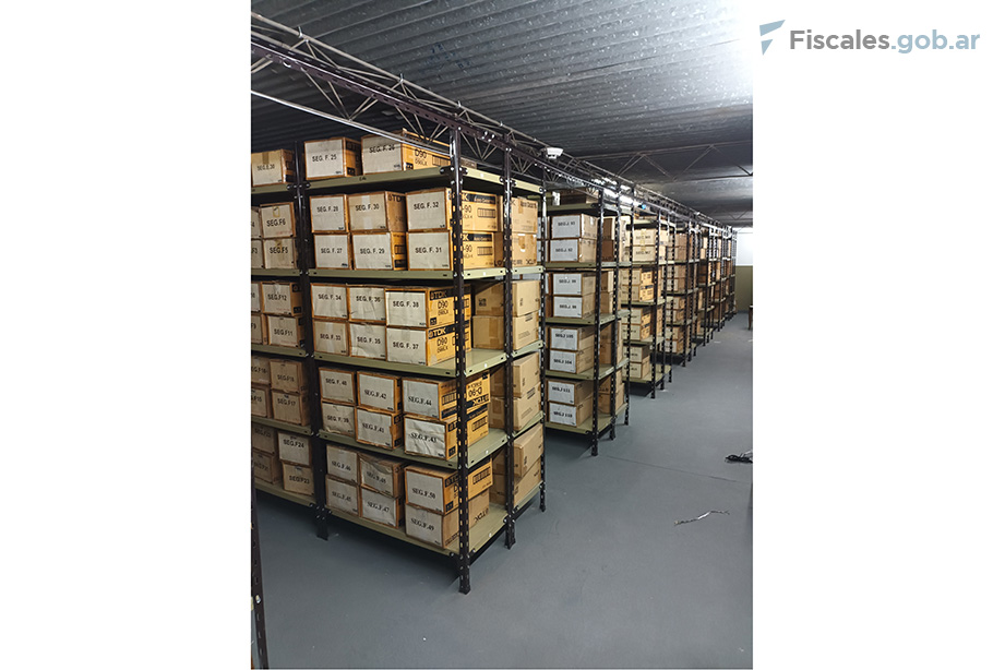 La documentación trasladada, cuya gestión está a cargo del Ministerio Público Fiscal de la Nación, se encuentra en diversos soportes y formatos -cintas de audio y video VHS, DVD, CD y cajas que contienen documentos en papel- y ocupa dos subsuelos del histórico edificio situado en avenida de Mayo 1366 de la ciudad de Buenos Aires. Ambos subsuelos cuentan en total con más de 1200 estantes, a lo cual se suma un espacio del primer subsuelo destinado a la guarda de documentación en unidades contenedoras de grandes dimensiones, donde se emplazaron mesas de trabajo para la recepción, clasificación y, de ser necesaria, la intervención previa a la ubicación final de la documentación.