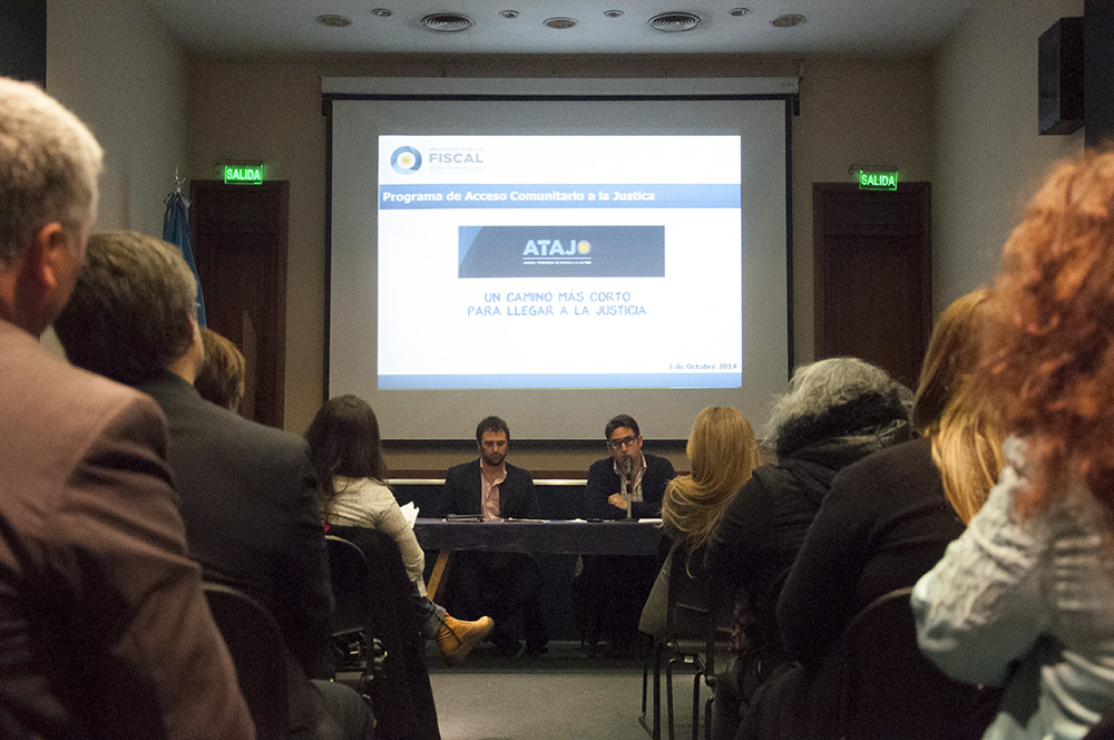 Tras la proyección de un video institucional de ATAJO, producido por el área de Comunicación de la Procuración General de la Nación, Julián Axat mencionó que la restante tarea “es la promoción de derechos. Por eso tenemos nosotros un equipo de Formación y Comunicación, que se relaciona con los referentes sociales de cada barrio”. Sobre este particular, enfatizó que “el ATAJO es neutral, aunque no ascéptico. Nosotros remarcamos nuestra pertenencia estatal, y nuestra especificidad judicial. Queremos dar un servicio amplio, integral y generoso con el vecino”.