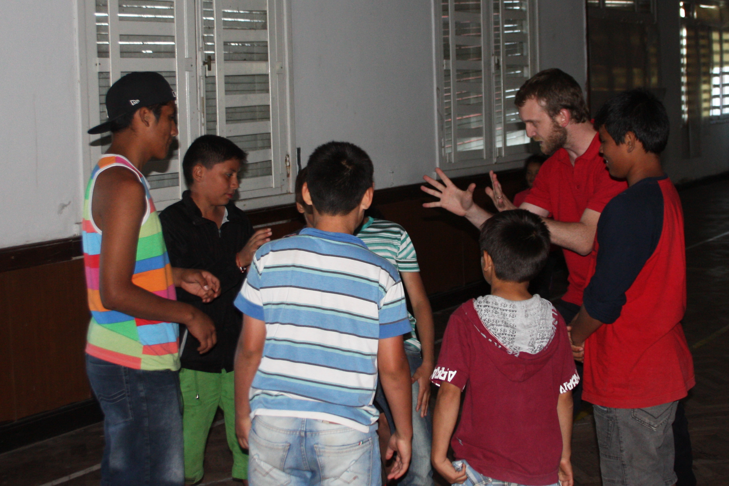 Las consignas fueron variadas: caminar, correr, trotar y cada tanto frenar cuando el profesor Juan Manuel lo indicaba. Los niños y adolescentes debían reunirse en grupos de distinta cantidad de integrantes según la consigna. Este procedimiento se repitió varias veces hasta lograr un clima amistoso. Luego, la consigna varió. Al disponerse en pequeños grupos, se armaba una ronda y uno de los integrantes pasaba al centro. Cerraba los ojos y manteniendo sus pies fijos se dejaba caer hacia los costados confiando en que cada uno de sus compañeros lo sostendría. De a poco se fue logrando una conciencia colectiva respecto de la necesidad de cuidarse mutuamente.