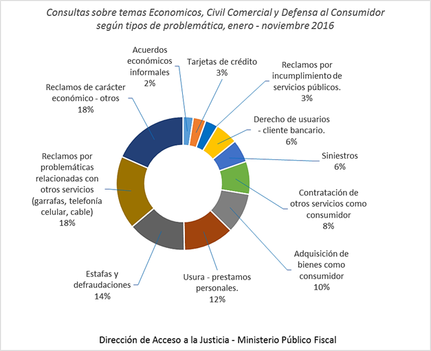 Los reclamos frecuentes corresponden a situaciones abusivas en los servicios financieros a los que acceden los habitantes de los barrios vulnerables. Según expresó Norberto Dorensztein, integrante del área jurídica de la Dirección de Acceso a la Justicia, “los servicios bancarios y financieros constituyen una de las relaciones de consumo en las que más se profundizan las asimetrías entre usuarios y proveedores”.