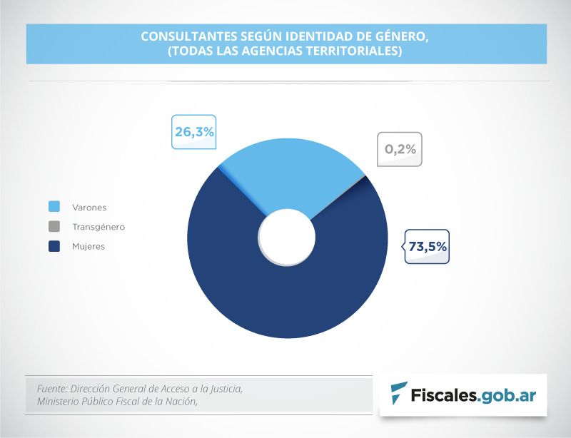 El informe registra que el 73,5 % del total de consultantes son mujeres, en tanto que el 26,3% son hombres y el 0,2 % restante pertenece a personas transgénero.