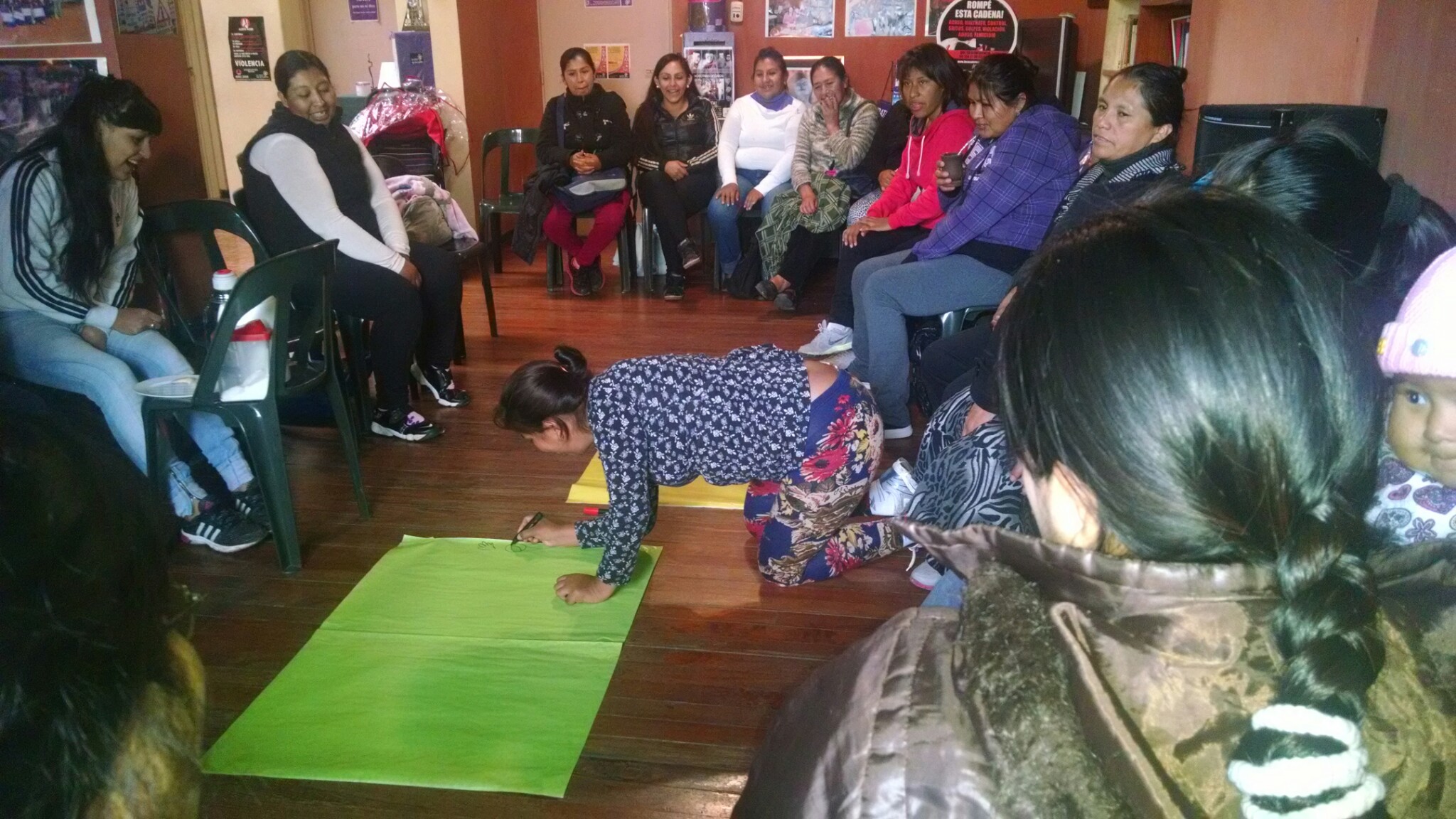 El viernes 29 de mayo unas treinta mujeres pertenecientes a la Agrupación Bartolina Cisa y que se reúnen periódicamente en el comedor comunitario “Mujeres Creando”, de la villa 1-11-14, realizaron un taller en la sede de la Asociación Civil Casa del Encuentro, una ONG situada en el barrio de Almagro.