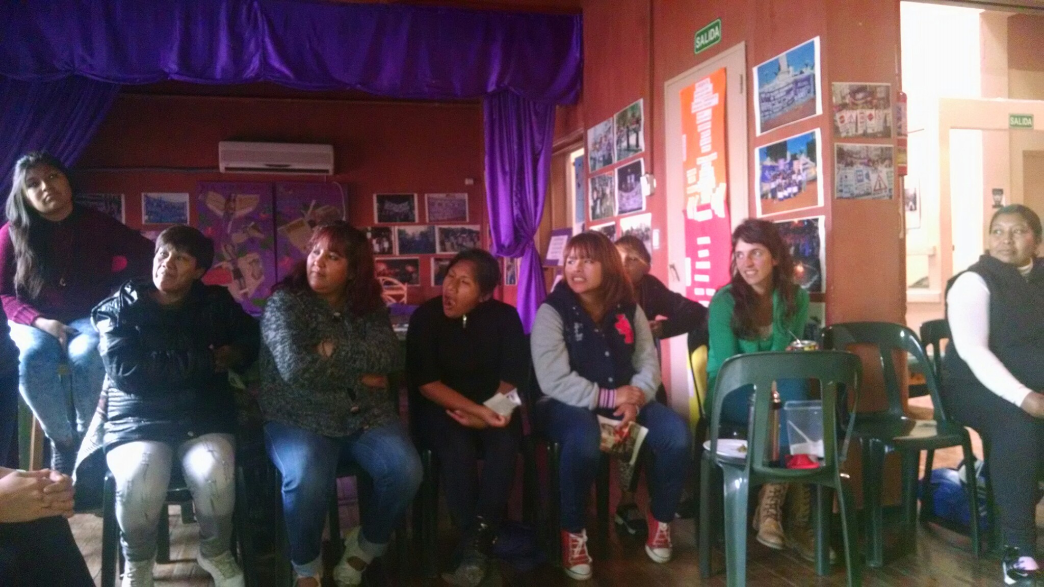 Las mujeres arribadas desde el Bajo Flores fueron acompañadas, en algunos casos, por sus niños, y los operadores de ATAJO. En el local fueron recibidas por Marianela Noé, Débora Schubert y Carmen Villalba García, psicólogas de la Asociación Civil.