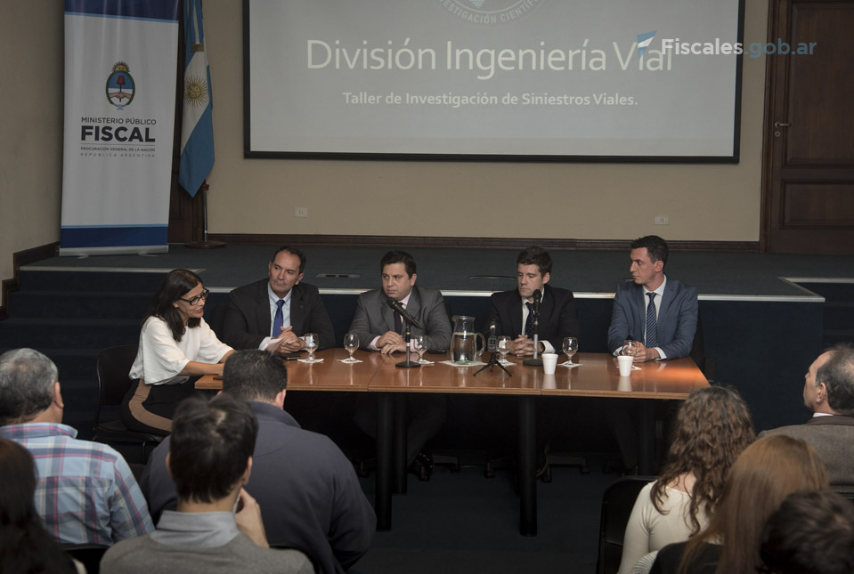 Tras la presentación del taller efectuada por la fiscal Silvana Russi, en la primera parte disertaron el jefe a cargo de la Superintendencia de la Policía Científica de la Policía de la Ciudad de Buenos Aires, Claudio Esteban Marcelo Zapata; el jefe de la División Ingeniería Vial de la Policía de la Ciudad de Buenos Aires, Martín Fabián González; el inspector y jefe de servicios de la División Ingeniería Vial, Oscar Christian Morales; y los peritos de la División Ingeniería Vial, Nicolás Yourik, José Daniel Otero, Rubén Guillermo.