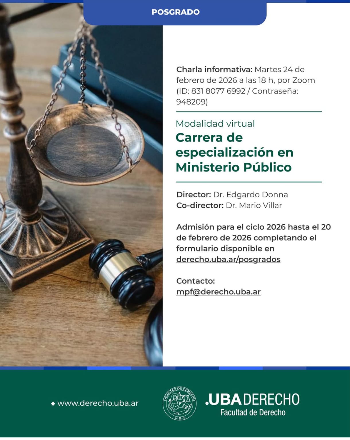 Para mayor información, las personas interesadas pueden comunicarse al correo electrónico mpf@derecho.uba.ar.