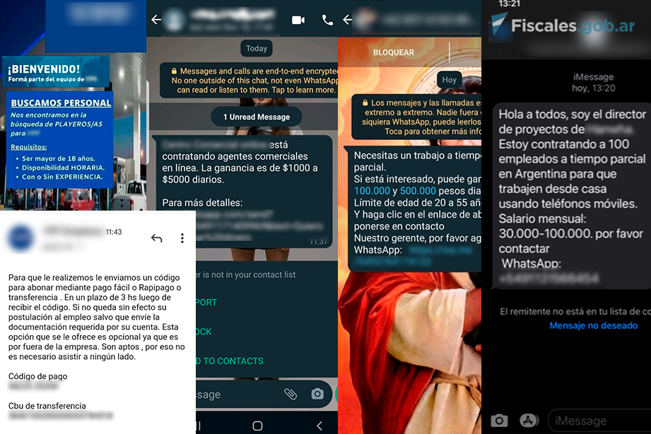 En las últimas semanas, la Unidad Fiscal Especializada en Ciberdelincuencia (UFECI), a cargo del fiscal Horacio Azzolín, detectó un incremento en los reportes por falsas ofertas de trabajo recibidas por WhatsApp o correo electrónico. Se trata de casos de “fraude por reclutamiento” en los cuales las víctimas son contactadas a través de esas vías y, bajo engaño, se les solicita el envío de datos personales y dinero para supuestos gastos administrativos, para acceder a una entrevista laboral o un futuro empleo. Sin embargo, los datos brindados por las víctimas pueden ser utilizados para abrir cuentas en bancos electrónicos, donde se deposite el dinero proveniente de otros fraudes.