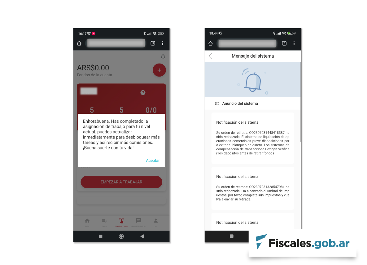 La estafa se termina de perfeccionar cuando las personas quieren extraer el dinero que fueron ganando con sus labores. Es entonces cuando las víctimas se encuentran con un anuncio que les indica que no pueden extraer su dinero porque su orden de retiro ha superado un umbral impositivo.