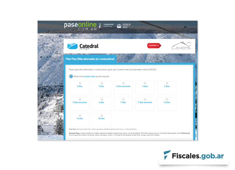 La UFECI solicita a quien haya intentado adquirir pases a través de la página de Ski Pass Catedral y haya advertido posteriormente débitos no autorizados en sus tarjetas de crédito o en sus cuentas bancarias que dé aviso al banco y remita toda la información posible del caso a contactoufeci@mpf.gov.ar con el asunto “CERRO CATEDRAL”.
