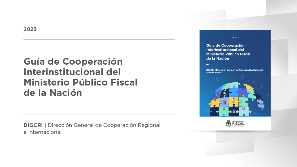 La Dirección General de Cooperación Regional e Internacional (DIGCRI) presentó la “Guía de Cooperación Interinstitucional del Ministerio Público Fiscal de la Nación”, que da cuenta de los tipos de cooperación directa entre ministerios públicos nacionales y extranjeros, la normativa aplicable y las redes de colaboración especializadas existentes. El documento incluye estadísticas, casos testigos y las pautas para realizar pedidos de cooperación interinstitucional.