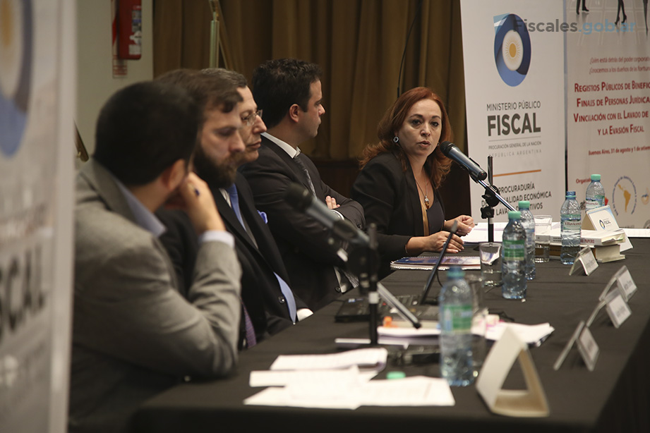 En el segundo encuentro, la titular de la Fiscalía general ante la Cámara Nacional de Apelaciones en lo Comercial de la Capital Federal, Gabriela Boquín; el fiscal de la Procuraduría de Investigaciones Administrativas (PIA) Santiago Eyherabide, y Argibay Molina integraron la mesa “La identificación de los beneficiarios finales y la justicia”. Boquín remarcó la necesidad de contar con registros públicos exhaustivos de beneficiarios y puso énfasis en "el compromiso en la búsqueda de la transparencia. La opacidad financiera no favorece a las inversiones ni al mercado legítimo sino que lo erosiona, ya que este tipo de prácticas están detrás de los grandes negocios ilícitos, como el narcotráfico y el terrorismo". Eyherabide planteó las problemáticas y limitaciones relacionadas con este tipo de investigaciones, tanto de carácter interno como externo, este último relacionado con el acceso a la información de cuentas y sociedades radicadas en el extranjero. Por su parte, a través del estudio de ejemplos basados en casos, Argibay Molina mostró cómo el trabajo en conjunto entre jueces y fiscales hizo posible que esas investigaciones siguieran su curso, por lo que propuso "fomentar la cooperación entre organismos de la sociedad civil para que estos temas se discutan en serio y podamos darle a esta cuestión una solución mejor".