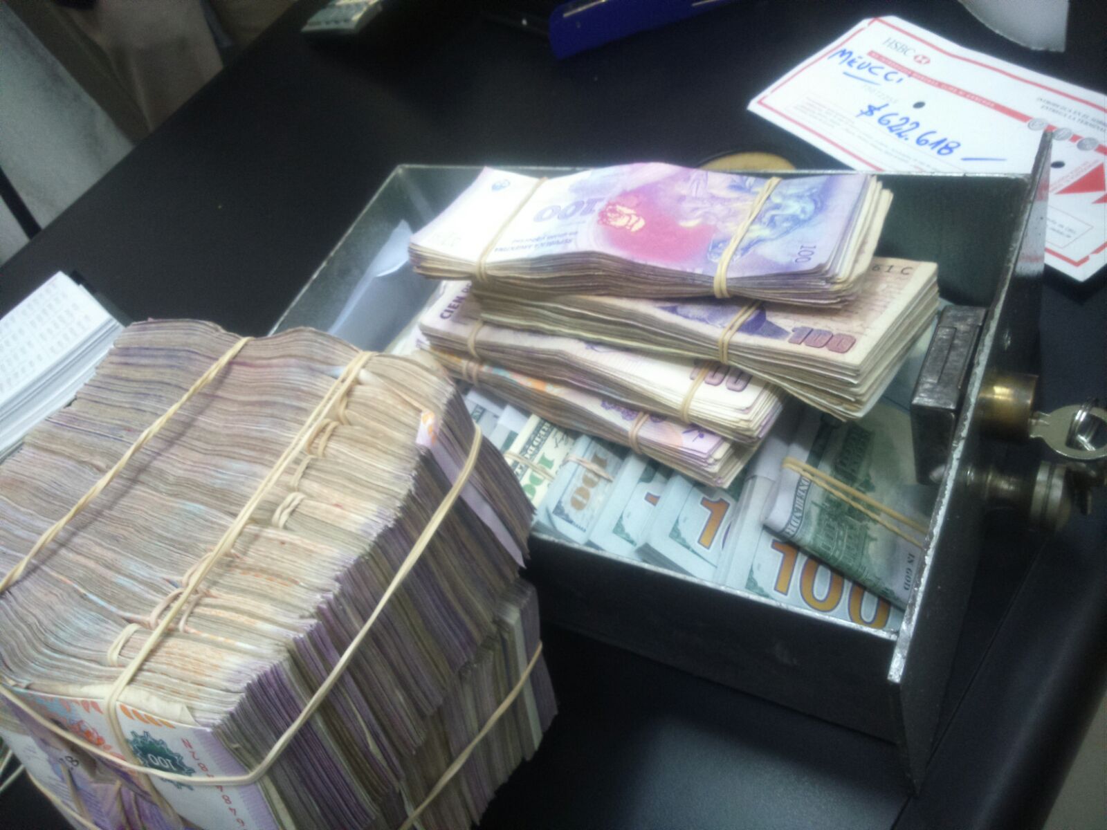 En los múltiples allanamientos se secuestró una importante cantidad de dinero en efectivo, tanto en moneda nacional como extranjera, así como cheques, pagarés, documentación relacionada a automotores de alta gama y máquinas contadoras de billetes, entre otros elementos.