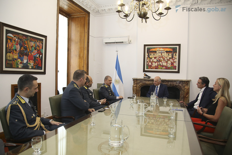 El procurador general de la Nación interino, Eduardo Casal, mantuvo esta mañana una reunión con representantes de la Guardia de Finanza (GdF) de Italia, reconocida fuerza de seguridad que desarrolla tareas de policía judicial especializada en el ámbito económico y financiero. El encuentro tuvo lugar en la sede de la Procuración General de la Nación ubicada en Perón al 600, en el microcentro de la Ciudad de Buenos Aires.