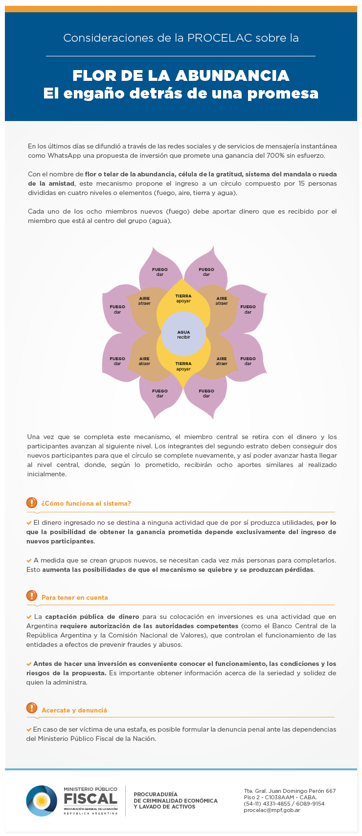 Tras la difusión que ha tenido a través de las redes sociales este supuesto mecanismo de inversión que promete un rápido y elevado retorno a cambio de un aporte inicial, la procuraduría especializada brinda elementos a tener en cuenta para prevenir fraudes y abusos.