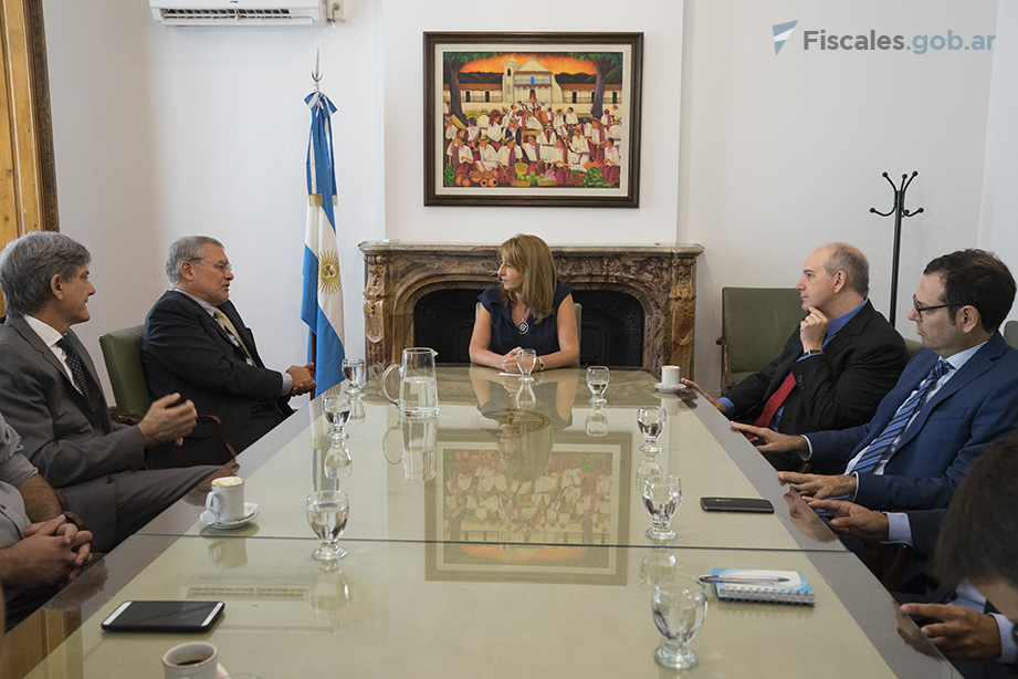 La procuradora general de la Nación, Alejandra Gils Carbó, recibió esta mañana al presidente de la Junta Directiva de Transparency International, José Ugaz, la organización global contra la corrupción con presencia en más de 100 países. Del encuentro, participaron además el titular de Poder Ciudadano, Hugo Wortman Jofre, junto a los directores ejecutivo y de Justicia y Acción Ciudadana de la organización no gubernamental argentina, Pablo Secchi y Germán Emanuele, respectivamente. En tanto, por el Ministerio Público, concurrieron el fiscal titular de la Procuraduría de Investigaciones Administrativas (PIA), Sergio Leonardo Rodríguez, y el cotitular de la Procuraduría de Criminalidad Economíca y Lavado de Activos (Procelac), Gabriel Pérez Barberá.