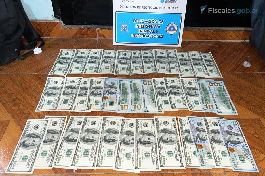 Dinero en pesos y dólares, calzado y más prendas de vestir incautadas en los allanamientos. Foto: Prefectura Naval Argentina
