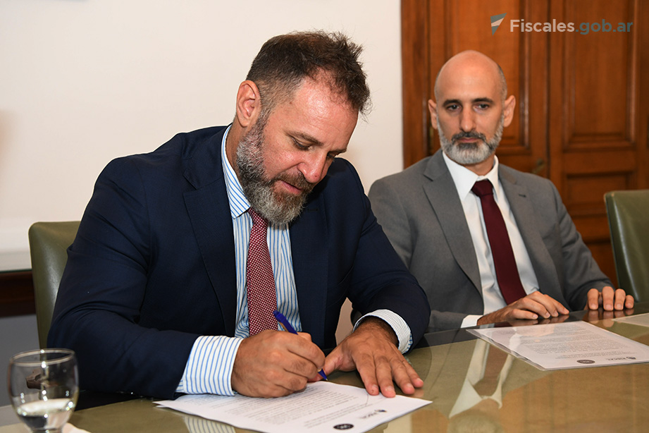 El fiscal general Diego Velasco y la fiscal federal Laura Roteta, cotitulares de la Procuraduría de Criminalidad Económica y Lavado de Activos (PROCELAC), firmaron un convenio de cooperación y colaboración con la Policía de Seguridad Aeroportuaria (PSA), representada por su director nacional, José Alejandro Glinski, quien estuvo acompañado del director general de Planificación de la fuerza, Nicolás Klimberg. En el mismo acto, firmaron un convenio específico para coordinar el desarrollo de actividades de capacitación conjuntas dirigidas a las unidades operacionales de Seguridad Compleja de la PSA. La suscripción de los acuerdos se llevó a cabo en la sede de la Procuración General de la Nación.