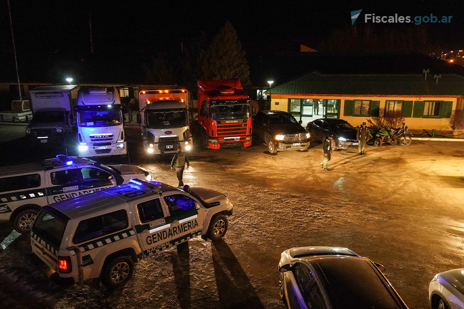 La Fiscalía Federal de Río Gallegos informó a Fiscales.gob.ar que los procedimientos demandaron el desplazamiento de 284 gendarmes en 44 vehículos de esa fuerza; 35 de la Prefectura Naval, que utilizó cuatro móviles; y 30 policías federales a bordo de seis unidades.