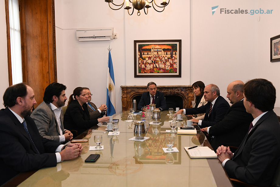 El titular de la Secretaría de Coordinación Institucional, Juan Manuel Olima Espel, recibió hoy en la sede de la Procuración General de la Nación la visita de una comitiva de alto nivel de representantes del Grupo de Acción Financiera Internacional (GAFI) y del organismo regional asociado para Latinoamérica (GAFILAT).