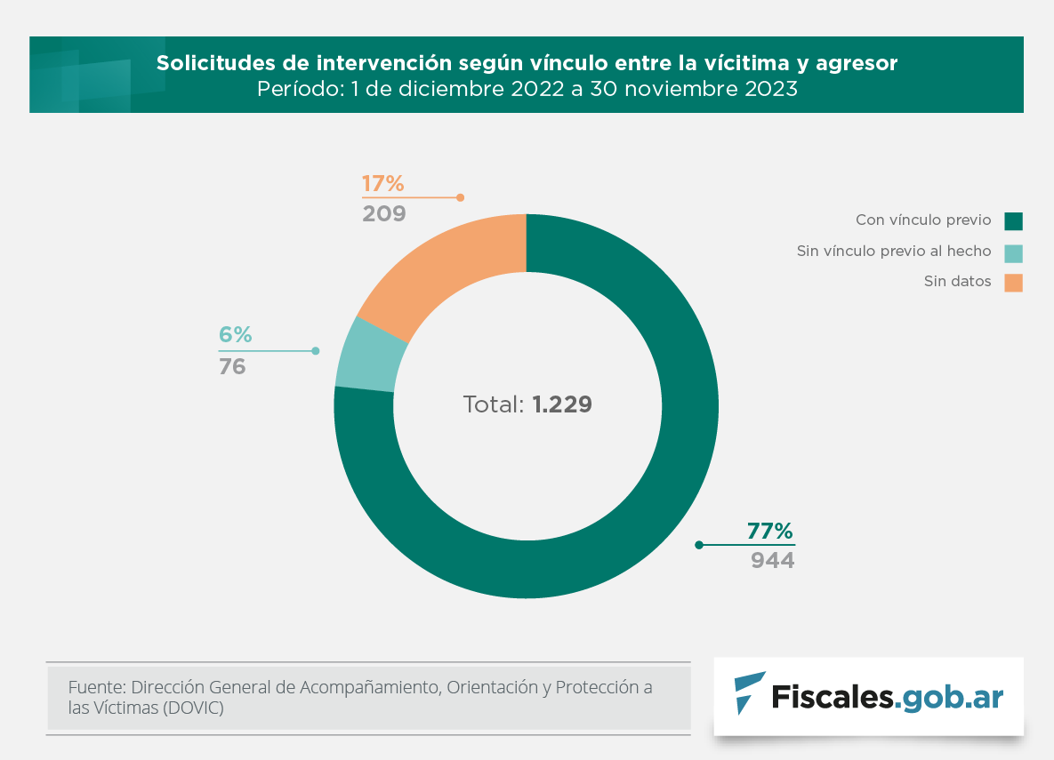 El documento se centra especialmente en el período comprendido entre el 1° de diciembre de 2022 y el 30 de noviembre de 2023, en el cual ingresaron a la DOVIC 1290 solicitudes de intervención, entre pedidos de acompañamiento de víctimas (1229) y declaraciones realizadas en Cámara Gesell (61) gestionadas por la dirección. La cifra implica un incremento de ingreso de solicitudes del 3% respecto al mismo período del año anterior (2021-2022), cuando se habían registrado 1.255 solicitudes.