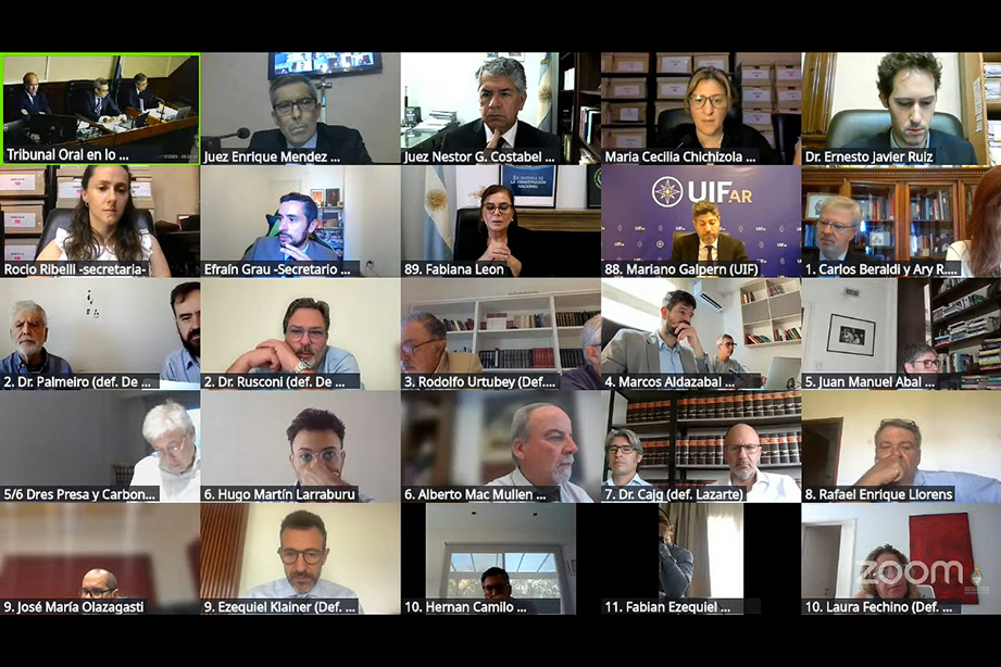 Previo a ello, la secretaria del Tribunal, María Cecilia Chichizola informó que el imputado Gerardo Luis Ferreyra (75) -exvicepresidente y accionista de Electroingeniería S.A.- fue “eximido de estar con cámara encendida por encontrarse internado en virtud de una intervención quirúrgica”, y se hizo lo propio con el imputado Néstor Emilio Otero (87) -accionista mayoritario de TEBA S.A.- por presentar “un cuadro de gastroenteritis aguda con signos de deshidratación”.