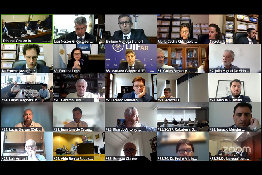 La novena jornada del juicio por la denominada causa Cuadernos, continuó con la lectura de los requerimientos de elevación a juicio del MPF. Foto: captura de Zoom