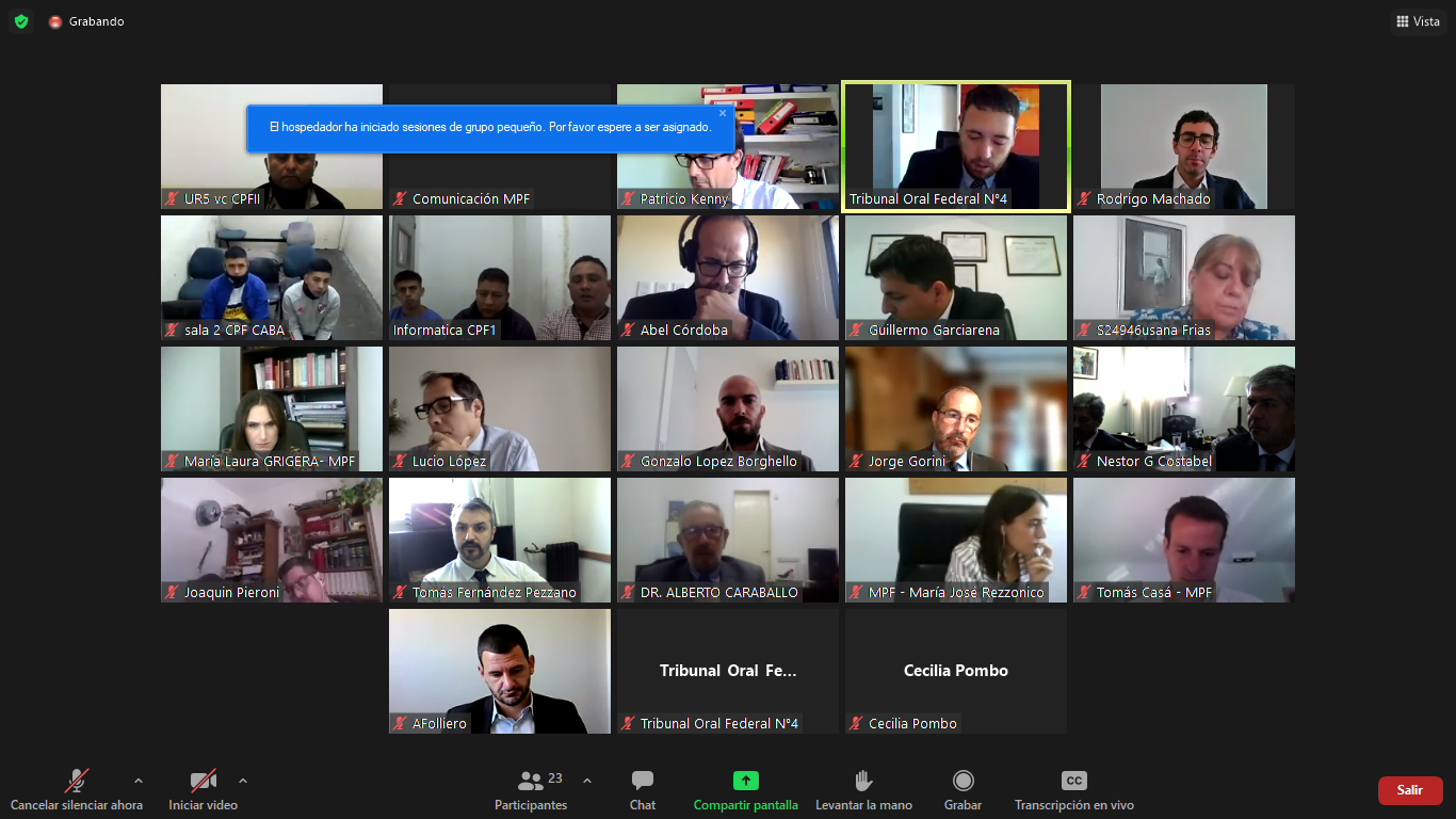 La audiencia de esta mañana se realizó de manera virtual: los seis acusados escucharon la lectura de los tres requerimientos de elevación a juicio desde el Complejo Penitenciario Federal de CABA y desde los Complejos Penitenciarios Federales I y II debido a que se encuentran en prisión preventiva. Tras la lectura, el Tribunal comunicó que el próximo jueves 5 de mayo comenzarán las declaraciones indagatorias de los acusados y que las audiencias se realizarán cada quince días.