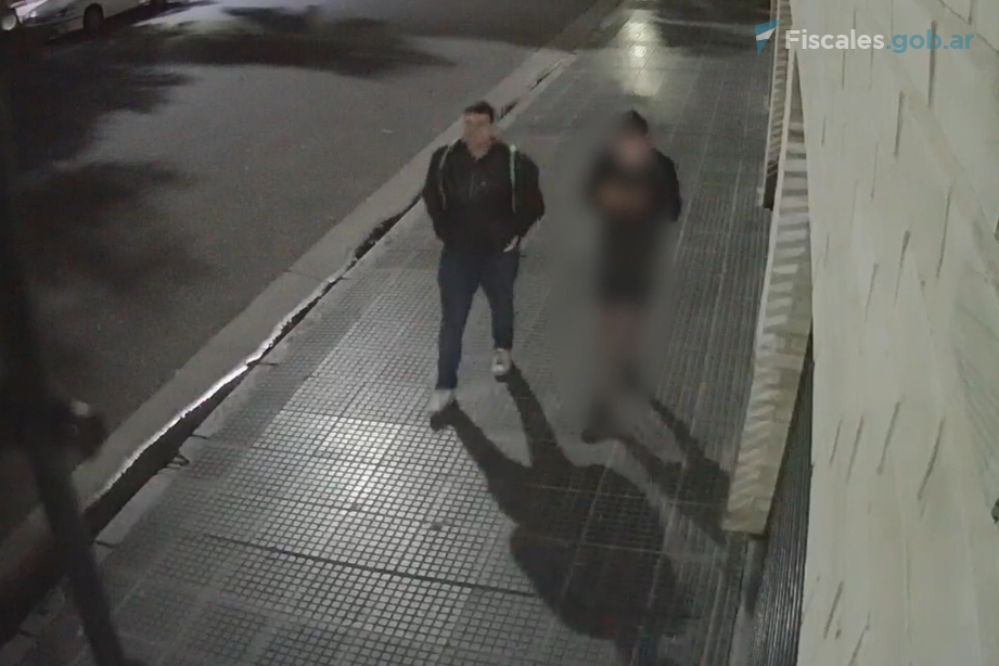 En las imágenes se lo ve acompañado de otro joven que también iba al mismo sitio, pero que es testigo en la causa y no está vinculado al hecho, según aclararon en la fiscalía dirigida por Belloqui.