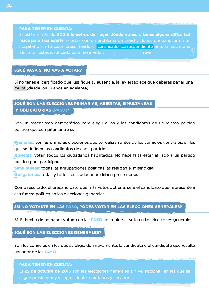 Por otra parte, aclara las diferencias entre las elecciones “Primarias, Abiertas, Simultáneas y Obligatorias” (PASO) y las elecciones generales.