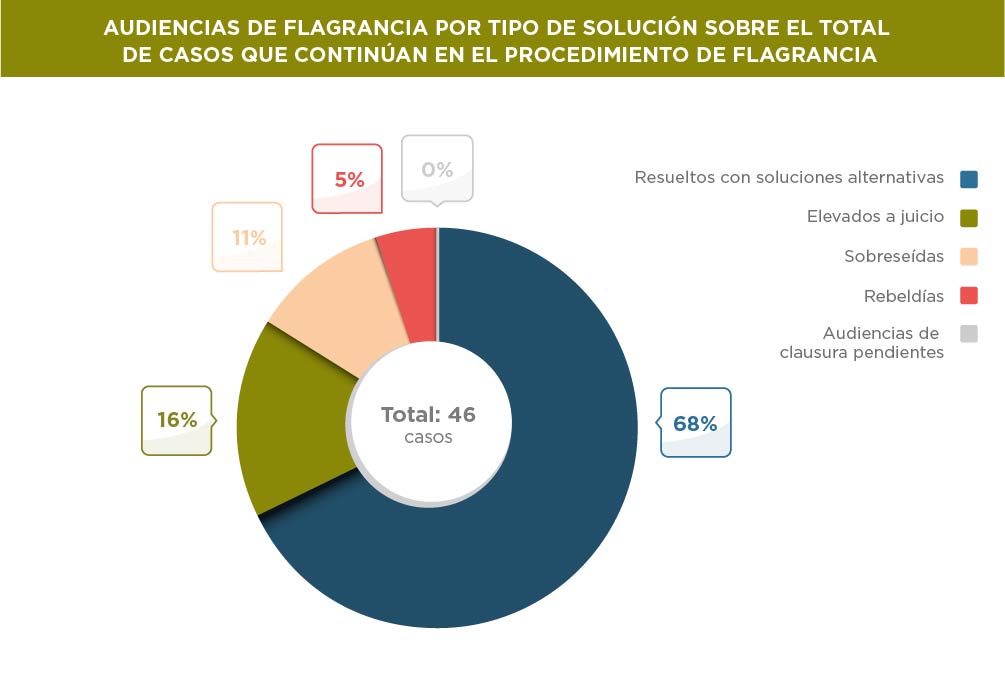 Si se tienen en cuenta únicamente las causas que permanecieron en flagrancia, el porcentaje aumenta: el 68% se resolvieron durante la instrucción y sólo un 16% fueron elevadas a juicio.