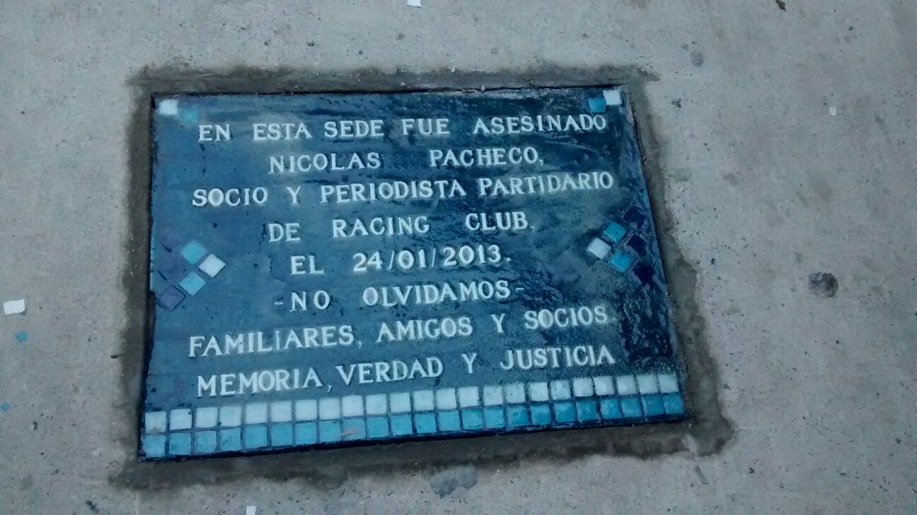 Enrique Armando Rulet (36), Aníbal Domínguez Butler (64) y Juan Carlos Rodriguez (30) fueron condenados a doce años de prisión por el delito de “homicidio simple” en diciembre de 2016. El por entonces Tribunal Oral en lo Criminal Nº23 había considerado que Pacheco fue asesinado a golpes dentro de la sede que Racing tiene en el barrio de Villa del Parque, en enero de 2013. En la autopsia se describieron una multiplicidad de lesiones: las más graves fueron las fracturas de cráneo y columna vertebral. Luego de la golpiza, el cuerpo fue arrojado a la pileta.