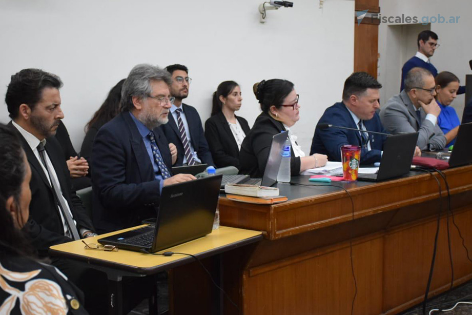La auxiliar fiscal Tamara Pourcel, junto al fiscal general Carlos Schaefer, durante su exposición en el alegato. Foto: Fiscalía General ante el TOCF de Corrientes.