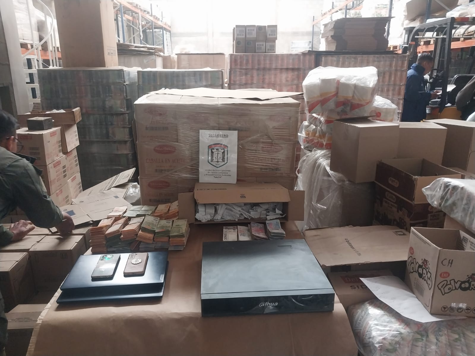 Allí se incautó la suma de 13.519.240 pesos, 271 pesos bolivianos, teléfonos, facturas, documentación comercial, sistemas de cámaras de video y cientos de cajas o bolsas de productos comestibles.