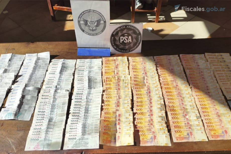 Parte del dinero secuestrado por la PSA en un allanamiento. Foto: Policía de Seguridad Aeroportuaria.