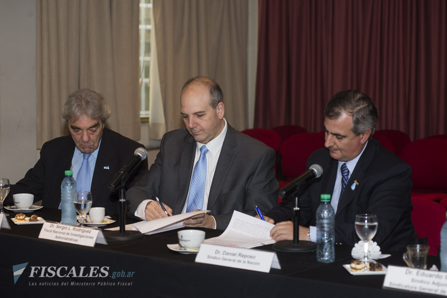 Esta tarde, el fiscal nacional de investigaciones administrativas, Sergio Rodríguez, firmó un convenio de cooperación y asistencia recíproca entre la dependencia del MPF a su cargo y la Sindicatura General de la Nación (SIGEN), representada por su titular, Daniel Reposo.