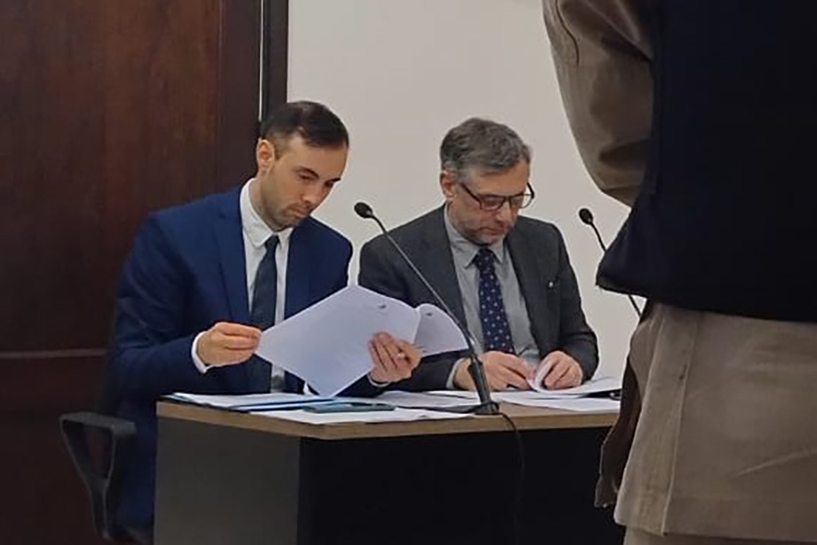 El fiscal federal Carlos Martínez y el auxiliar fiscal Agustín Roldán presentan el acuerdo pleno. Foto: Unidad Fiscal Mar del Plata