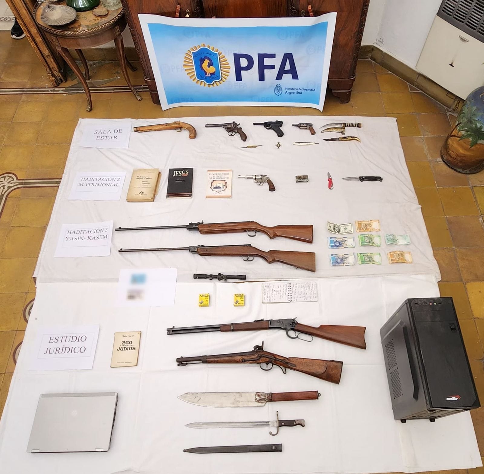 Elementos secuestrados en los allanamientos. Foto: PFA