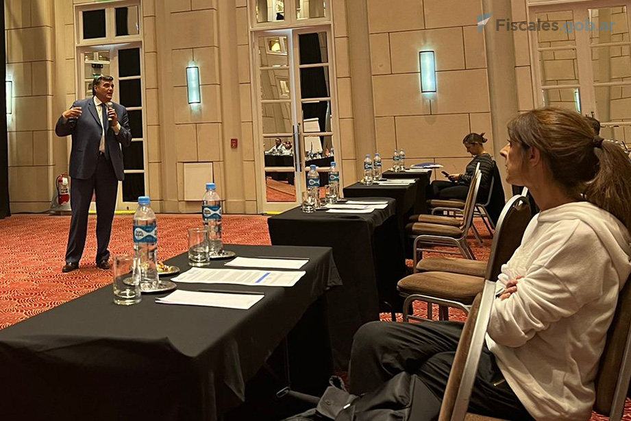 A su vez, durante la mañana del viernes, los docentes del MPF Di Gangi y Toranzos se reunieron con fiscales, funcionarios y empleados del organismo que desarrollan su labor en la ciudad de Mendoza, con el propósito de abordar la experiencia y desafíos que supone la puesta en marcha del sistema acusatorio y responder sobre interrogantes, dudas e inquietudes que pudiera plantear su próxima implementación. De esta actividad participaron la fiscal general María Gloria André, la fiscal federal Alejandra Obregón y los fiscales federales Fernando Alcaraz e Ignacio Sabas.