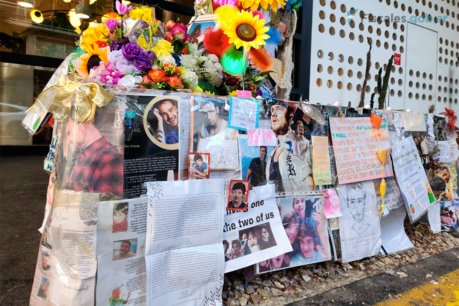 Fans del exlíder de la banda One Direction improvisaron un altar para recordar al músico en el ingreso al hotel. Foto: MPF