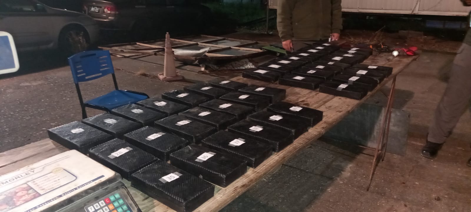 En la parte delantera del vehículo viajaba un matrimonio mientras que como acompañantes iban otros dos familiares. El conductor del rodado explicó que provenían de La Quiaca, provincia de Jujuy, y se dirigían a sus respectivos domicilios en la ciudad de La Plata, en Buenos Aires. En la requisa superficial de la camioneta, uno de los efectivos descubrió un tapón de goma en un sector derecho del guardabarros: al extraerlo, observaron un paquete de color negro lo que llevó a una inspección más exhaustiva. En presencia de testigos, los gendarmes extrajeron 40 paquetes de droga de ambos lados de los guardabarros que significaron un total de 43,360 kilos de cocaína. Además, se secuestraron 84 mil pesos, 100 dólares, 6 teléfonos celulares y documentación de interés para la investigación del hecho.