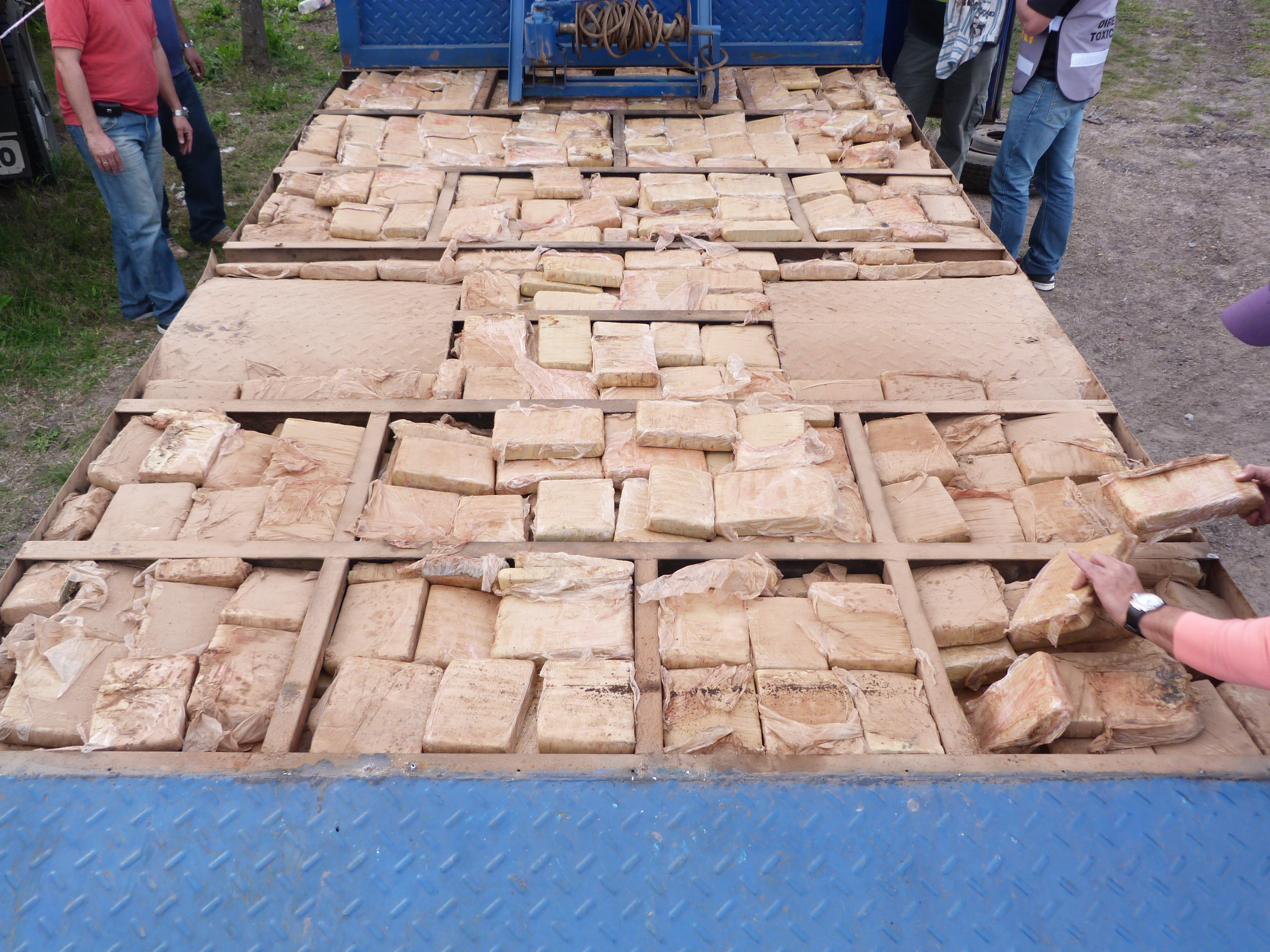 Cuando los oficiales de justicia analizaron al camión demorado en Rosario del Tala, pudieron observar que en la parte trasera había una rampa para subir los vehículos a la que le faltaban ocho remaches. Por eso, procedieron a levantar la chapa de asiento para el remolque y encontraron “en un compartimento tipo sobrepiso, gran cantidad de envoltorios de nylon (papel film) recubiertos con cinta de embalar marrón, de forma rectangular, de diferentes tamaños, en forma de ladrillos”.
