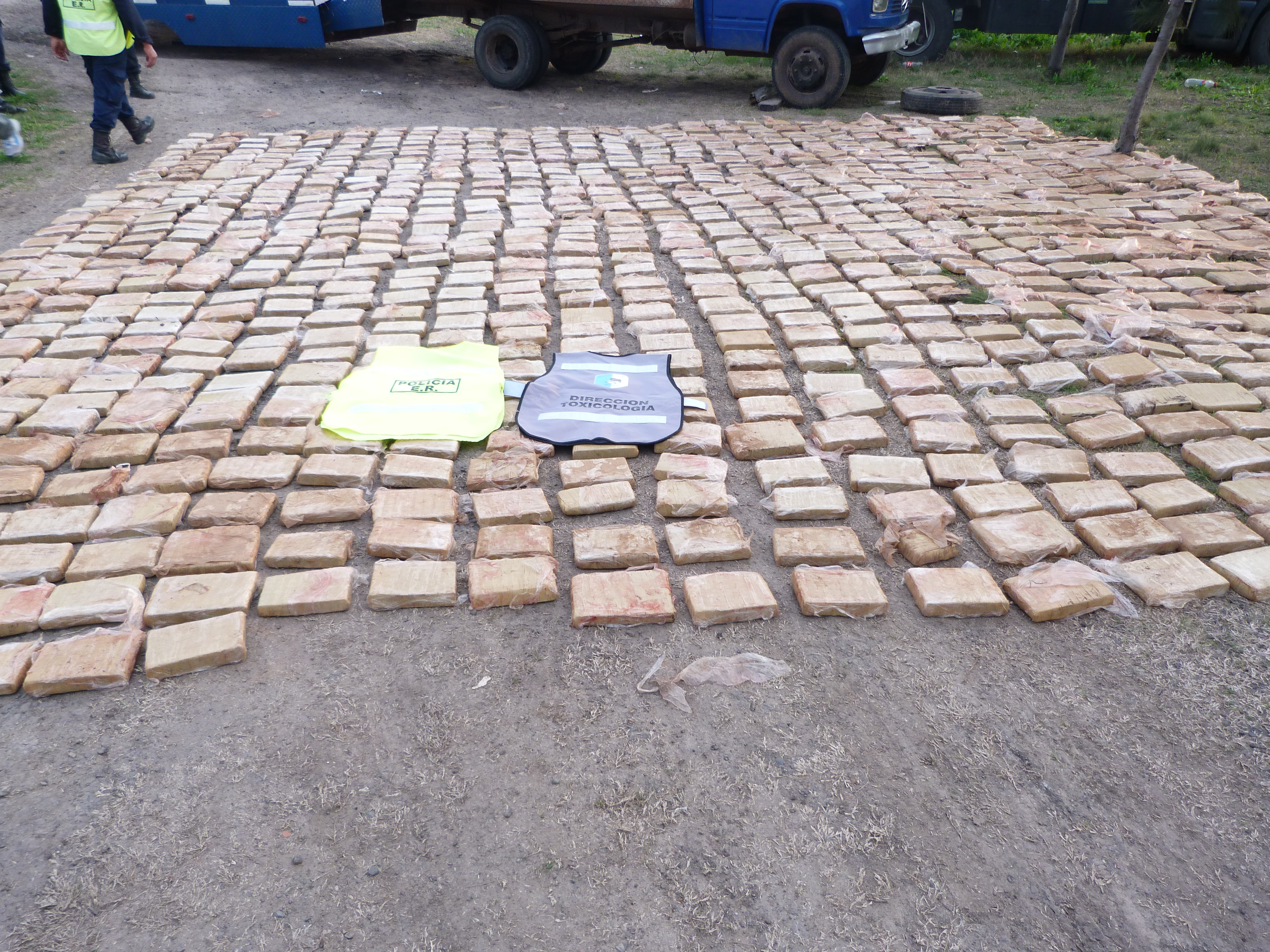 Los paquetes se sacaron de a uno y se colocaron sobre el asfalto. Cuando se terminó la tarea, habían contabilizado un total de 984, que, luego de ser analizados, dieron un resultado de 990,715 kilogramos de marihuana.