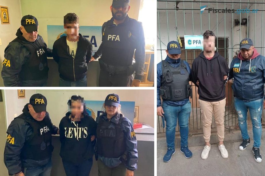 El presunto líder de la banda, Claudio Daniel Coto (arriba); el mecánico Néstor Adrián Santabaya (a la derecha); y su hijo remisero y parrillero Nicolás Adrián Santabaya (abajo) durante sus detenciones en diciembre de 2023. Foto: Policía Federal
