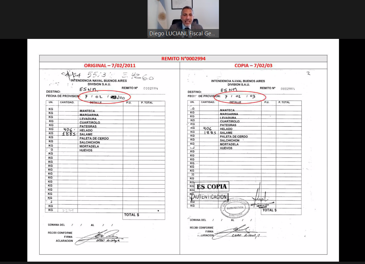 Posteriormente. tomó la palabra el fiscal coadyuvante José Ipohorski Lenkiewicz y centró su exposición en el análisis de las actas de recepción de mercaderías, tras lo cual se adentró en el encuadramiento jurídico de los hechos en la normativa vigente nacional e internacional.